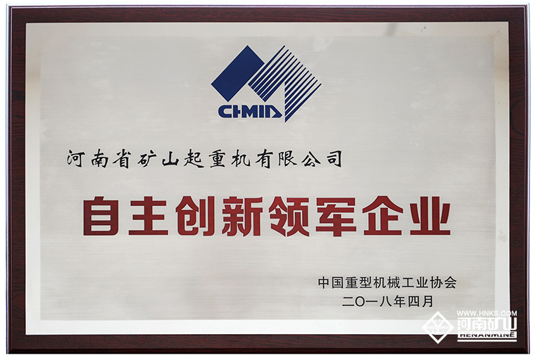 榮獲中國(guó)重型機(jī)械工業(yè)協(xié)會(huì)“自主創(chuàng)新領(lǐng)軍企業(yè)”榮譽(yù)稱號(hào)